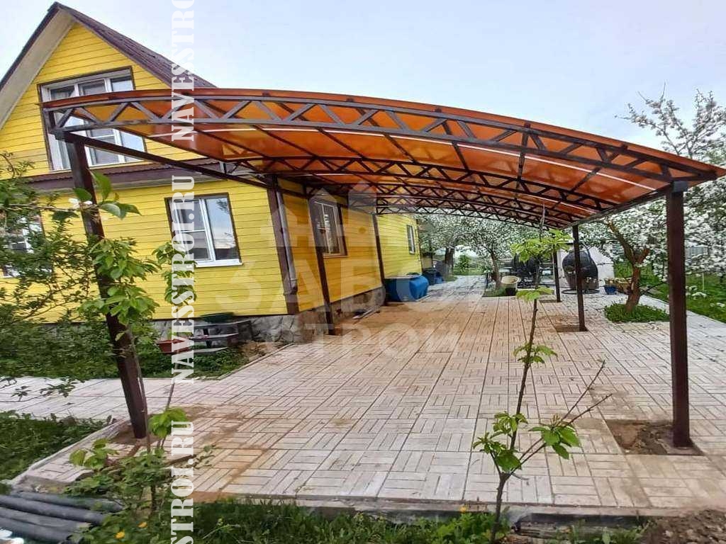 За день на даче изготовили арочный навес 5 на 7 с покрытием поликарбоната. Привезли уже готовые крашенные фермы и весь остальной материал. Все за собой убрали и увезли мусор. Молодцы!